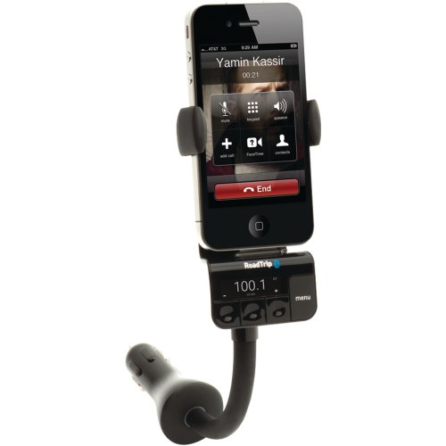 Wireless music transmitting and charging for your iPod and iPhone, and handsfree calling for your smartphone.RoadTrip holds your iPhone or iPod securely in place on a flexible steel neck, in a cleverly-designed cradle that accommodates most cases (so you won't even have to take your iPod or iPhone out of its case).RoadTrip uses a powerful FM transmitter to send the music wirelessly to your car's FM radio, so you and the whole car can enjoy it through your stereo speakers. And while you're enjoying the music, your iPod or iPhone is enjoying a battery-charge.You can also use RoadTrip as a handsfree speakerphone in your car. RoadTrip's built-in microphone picks up your voice, and your caller's voice plays through your stereo speakers. RoadTrip's handsfree phone features work with iPhone and other Bluetooth-enabled phones.Griffin innovations and user-centric design make the difference: like SmartScan, a Griffin feature that finds the best FM frequency and performs the setup for you; and user-definable presets that let you save and recall the most useful FM frequencies with a single button push; and Griffin SmartSound that analyzes the signal and adjusts the output to make sure your music sounds great. RoadTrip even puts track controls at your fingertips. Play, pause, skip tracks forward and backward from RoadTrip's buttons, and your eyes never have to leave the road.